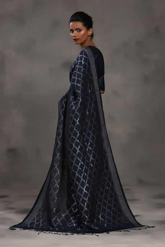 Linen Jamdani Jaal Neel