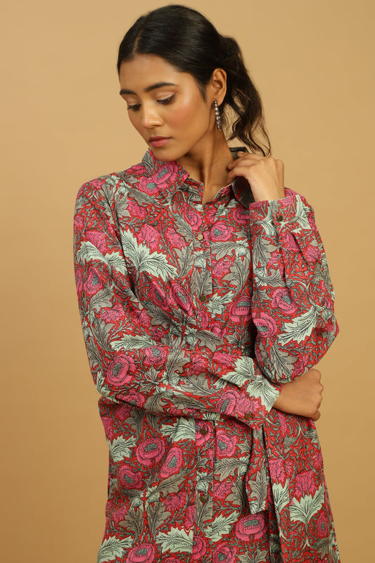 RED POPPY COTTON SILK KURTA SET (3 pcs)