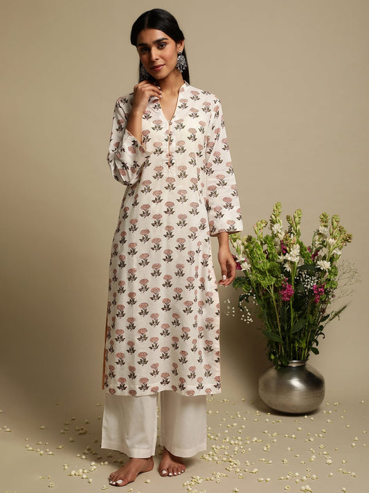 Blush Jaal Organic Cotton Hand Block Printed Kurta - (3 Pcs Set)