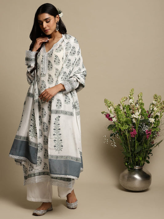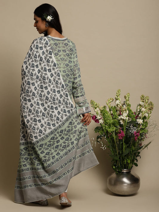 Grey Paisley Bootie Cotton Silk Hand Block Printed Kurta- (3 Pcs Set)