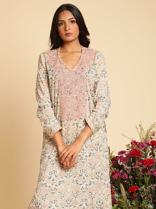Blush Jaal Organic Cotton Hand Block Printed Kurta - (3 Pcs Set)