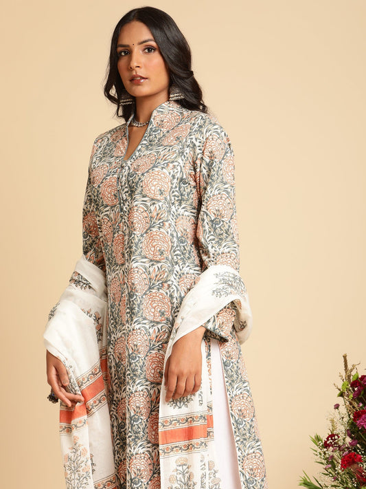 Coral Jaal Organic Cotton Hand Block Printed Kurta - (3 Pcs Set)