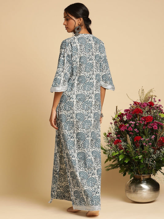 Indigo Stripes Organic Cotton Hand Block Printed Kaftan