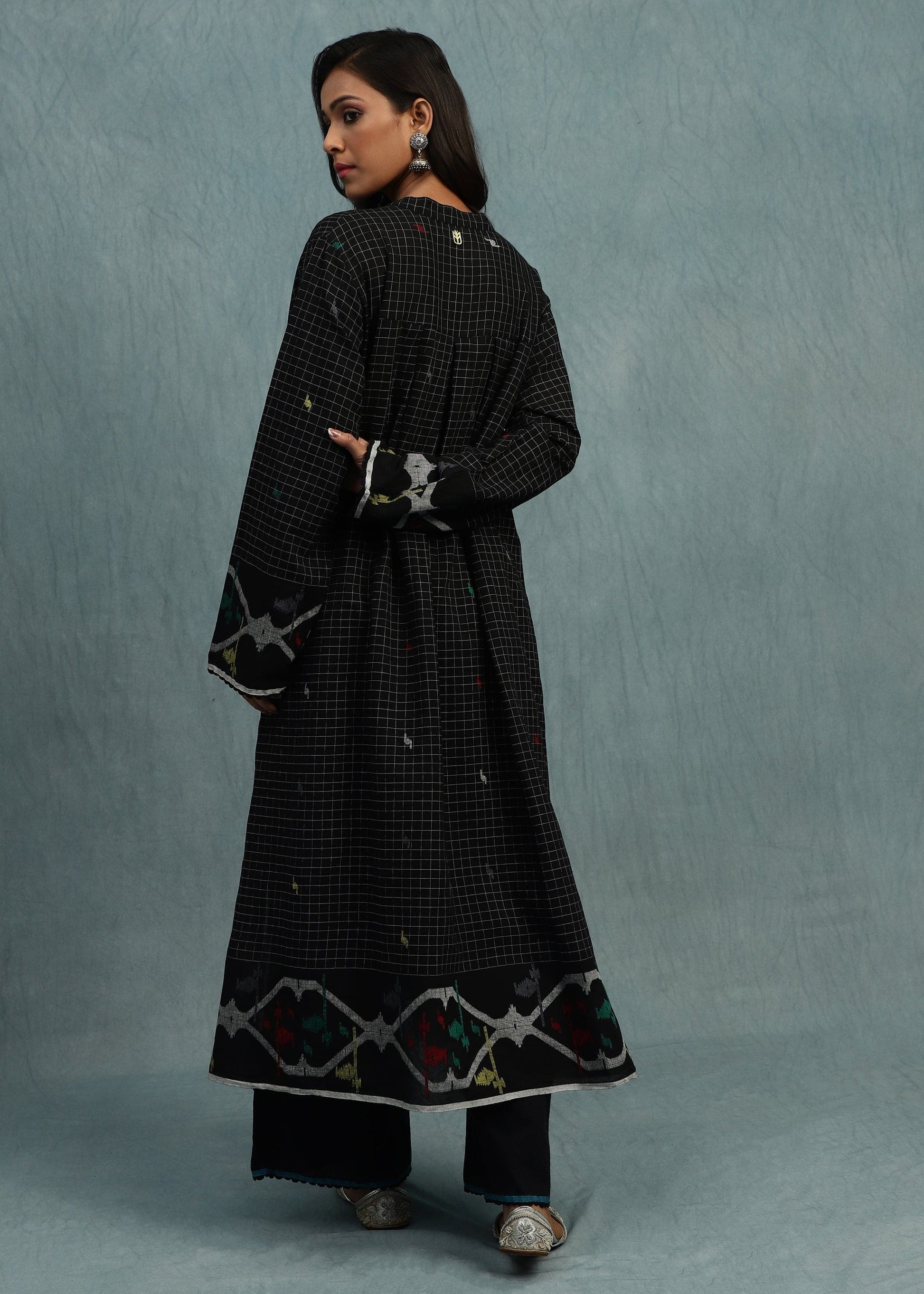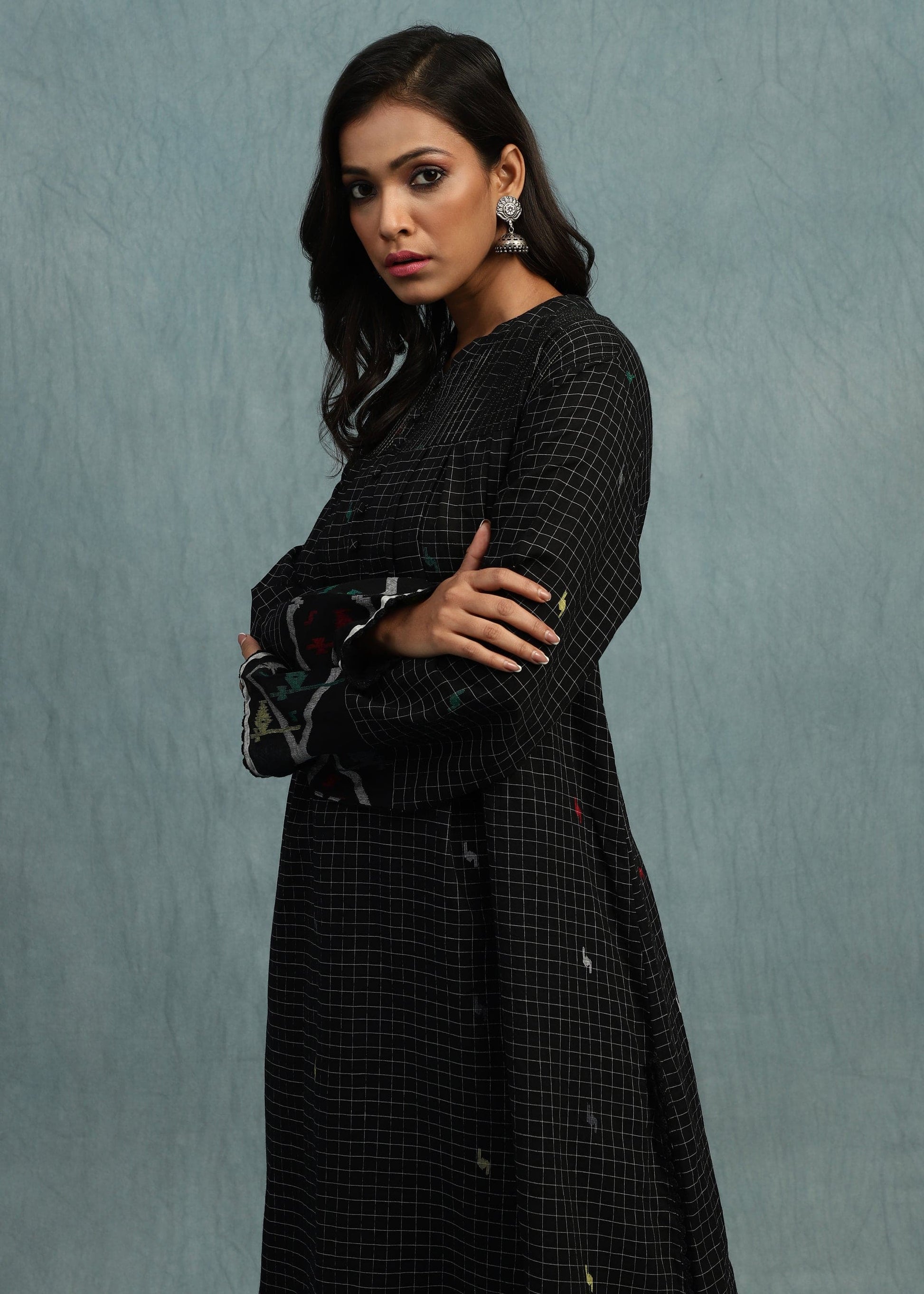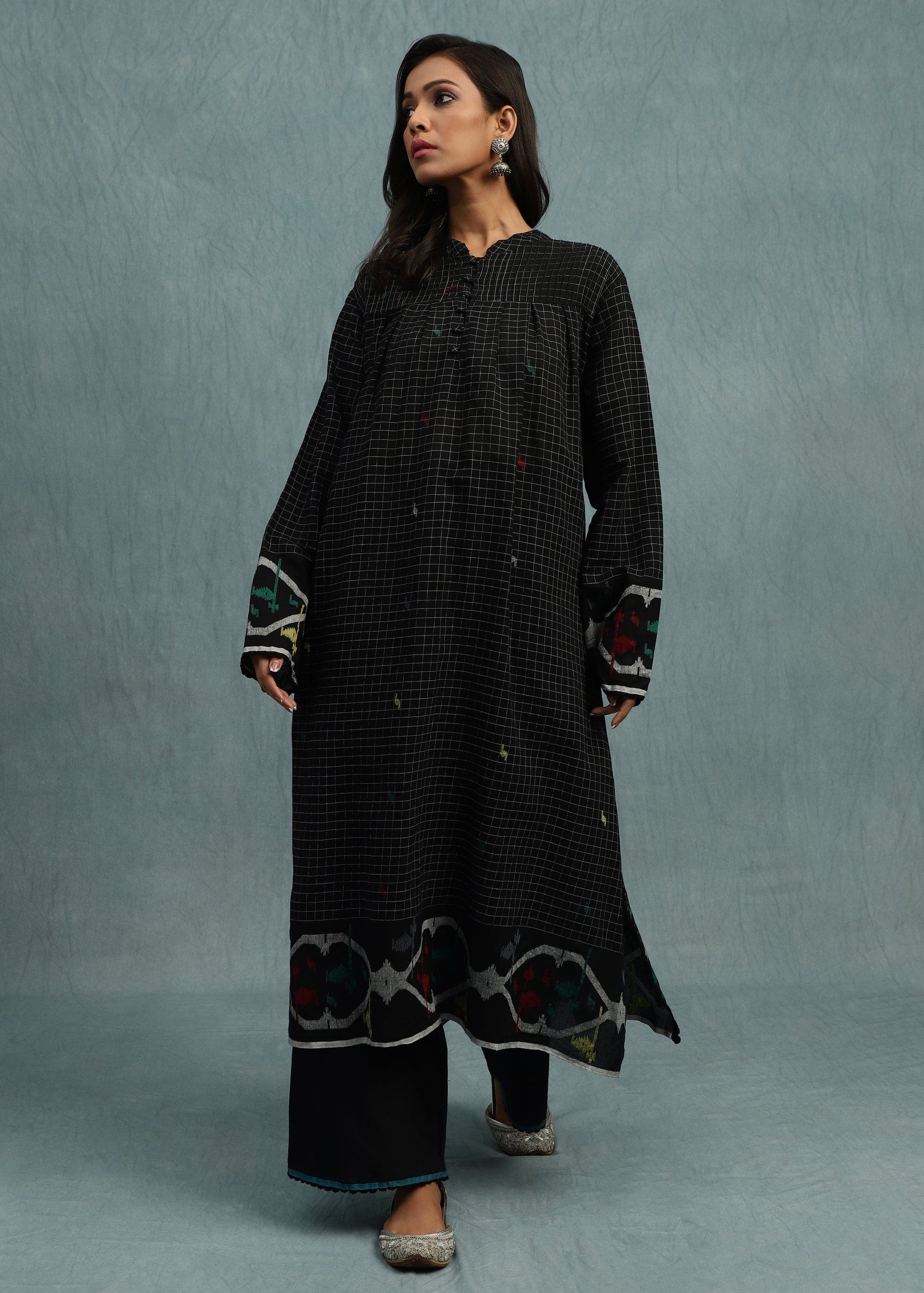 BLACK CHECK JAMDANI JAALI BORDER ORGANIC COTTON HAND WOVEN TUNIC SET