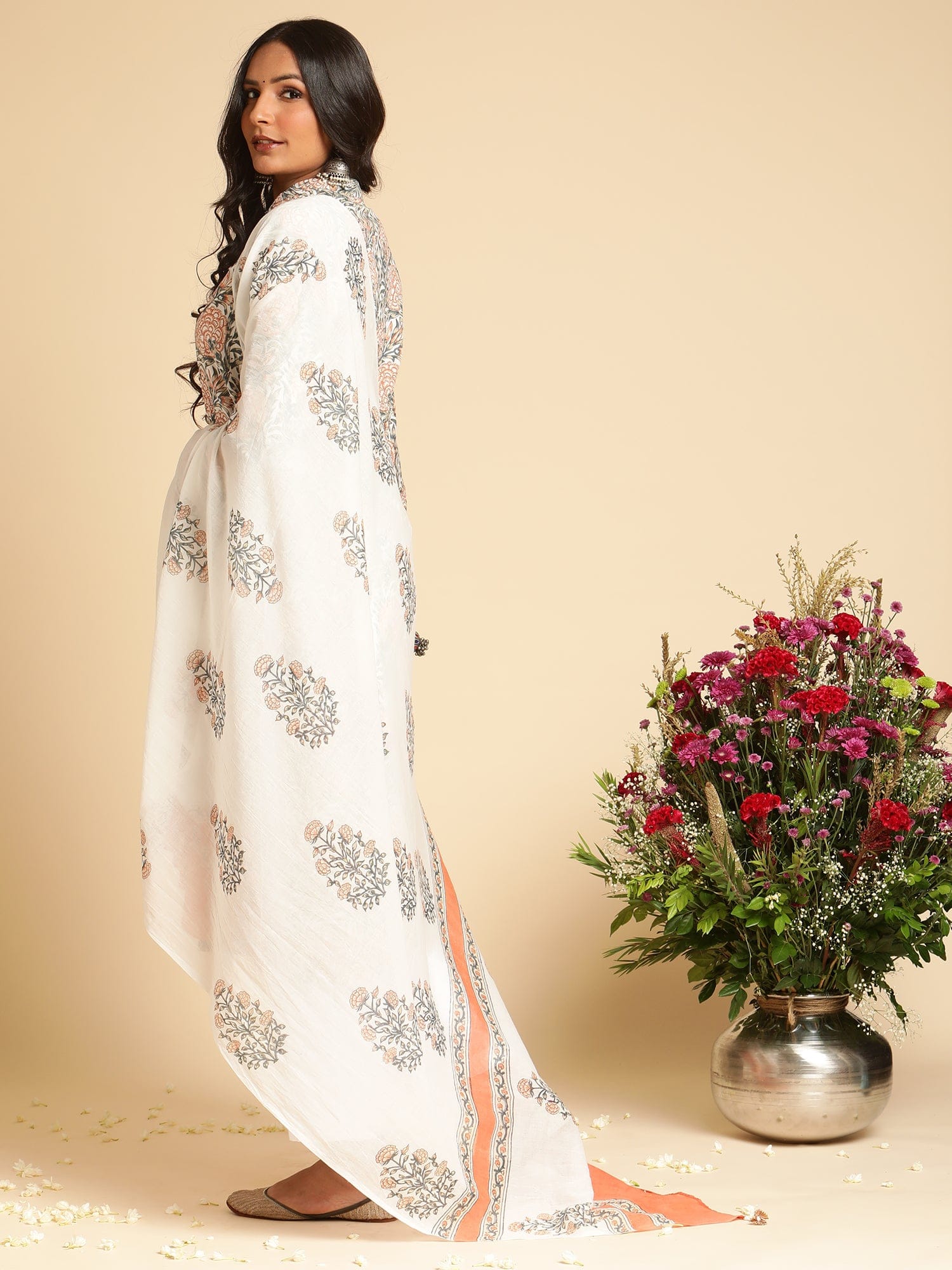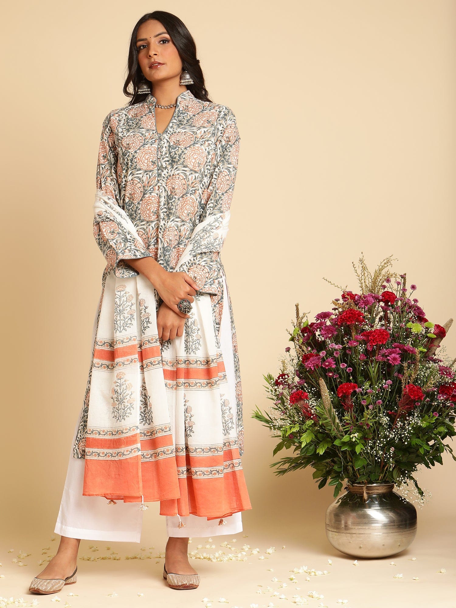 Peach Marigold Organic Cotton Hand Block Printed Kurta - (3 Pcs Set)