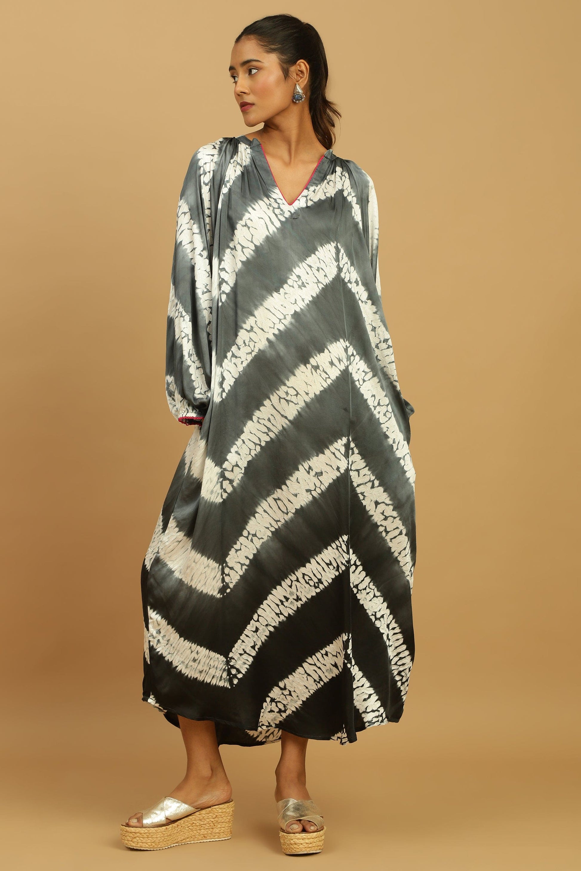 BLACK/ GREY OMBRE COTTON SILK SHIBORI DRESS