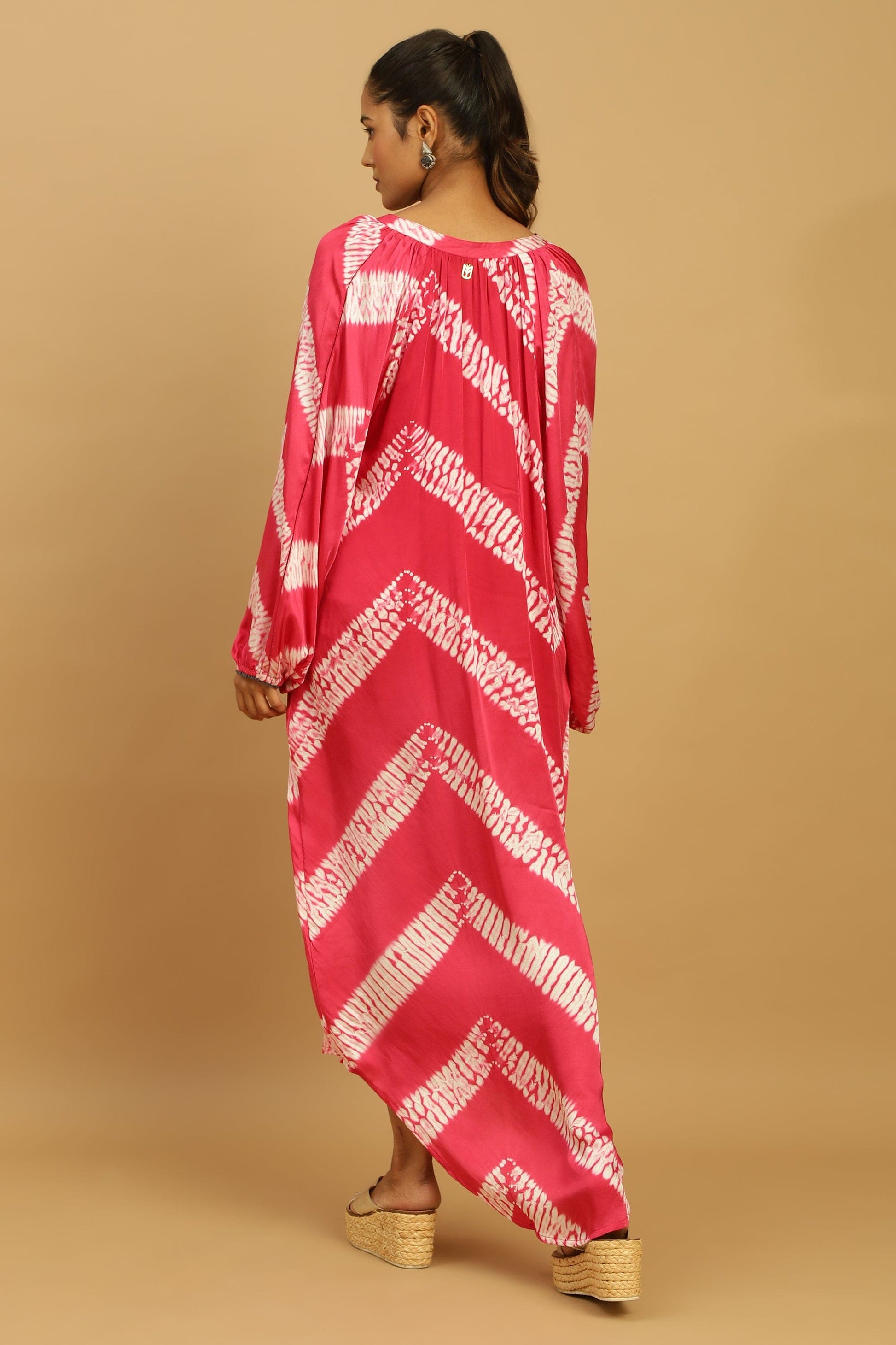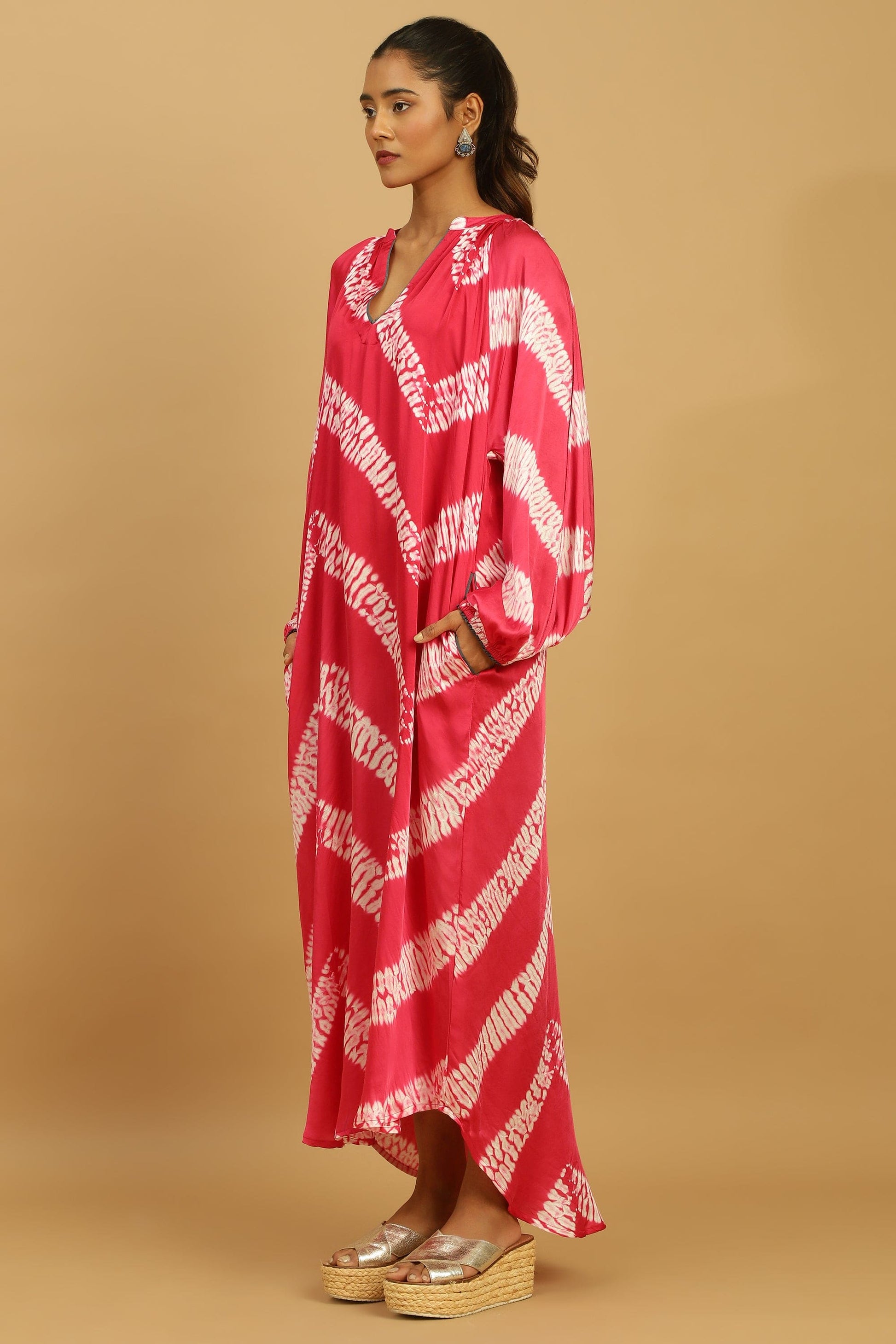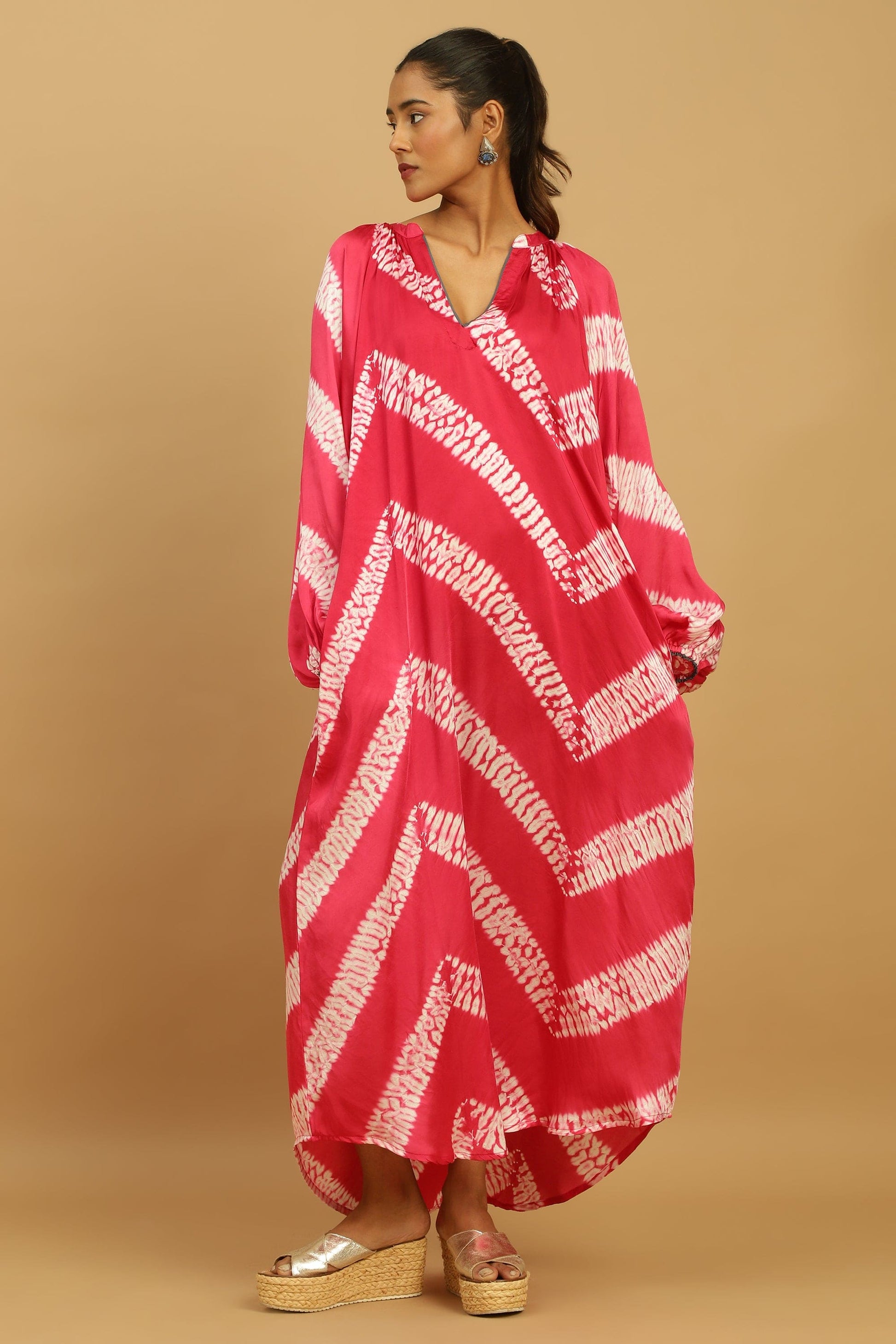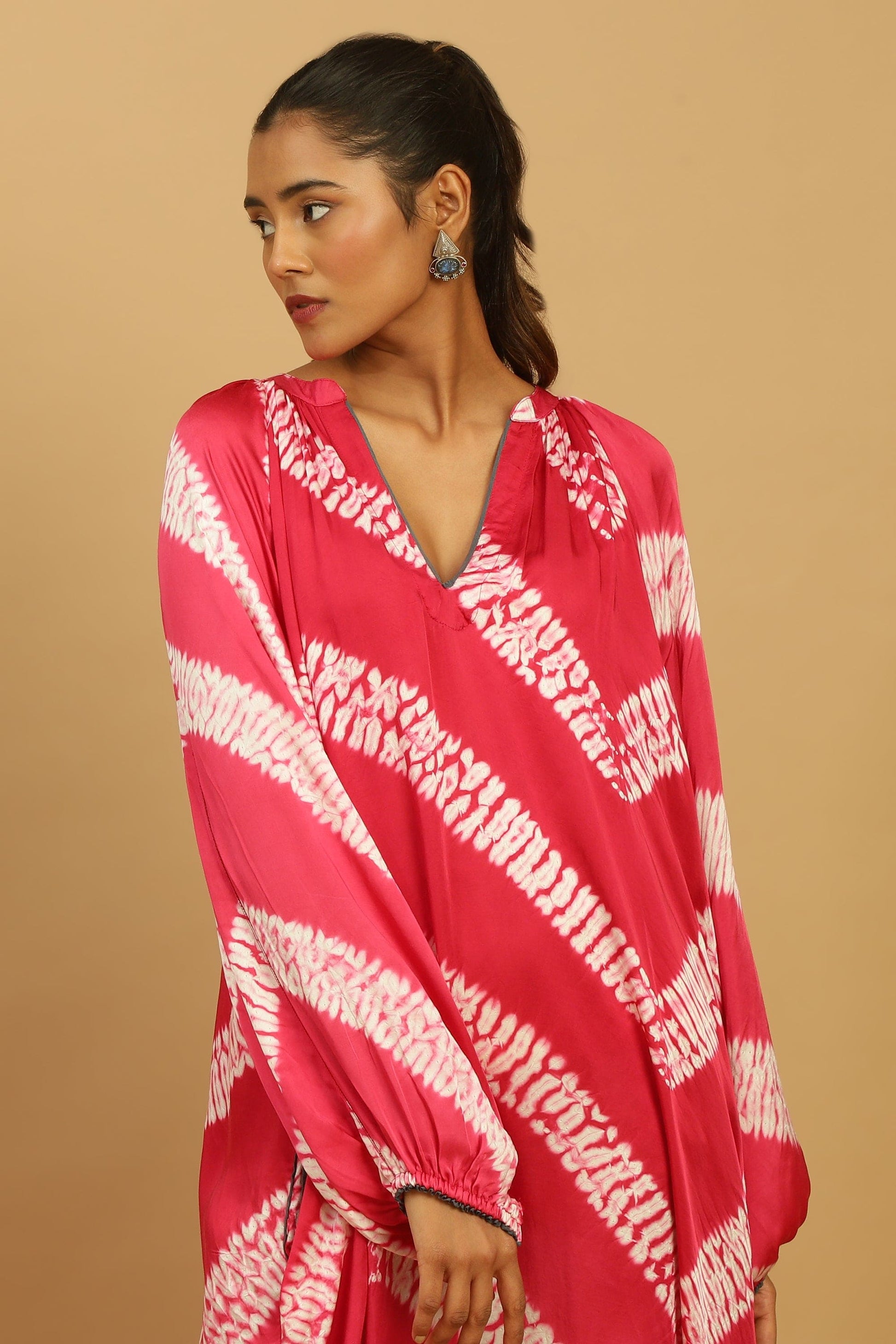 FUCHSIA/ PINK OMBRE COTTON SILK SHIBORI DRESS