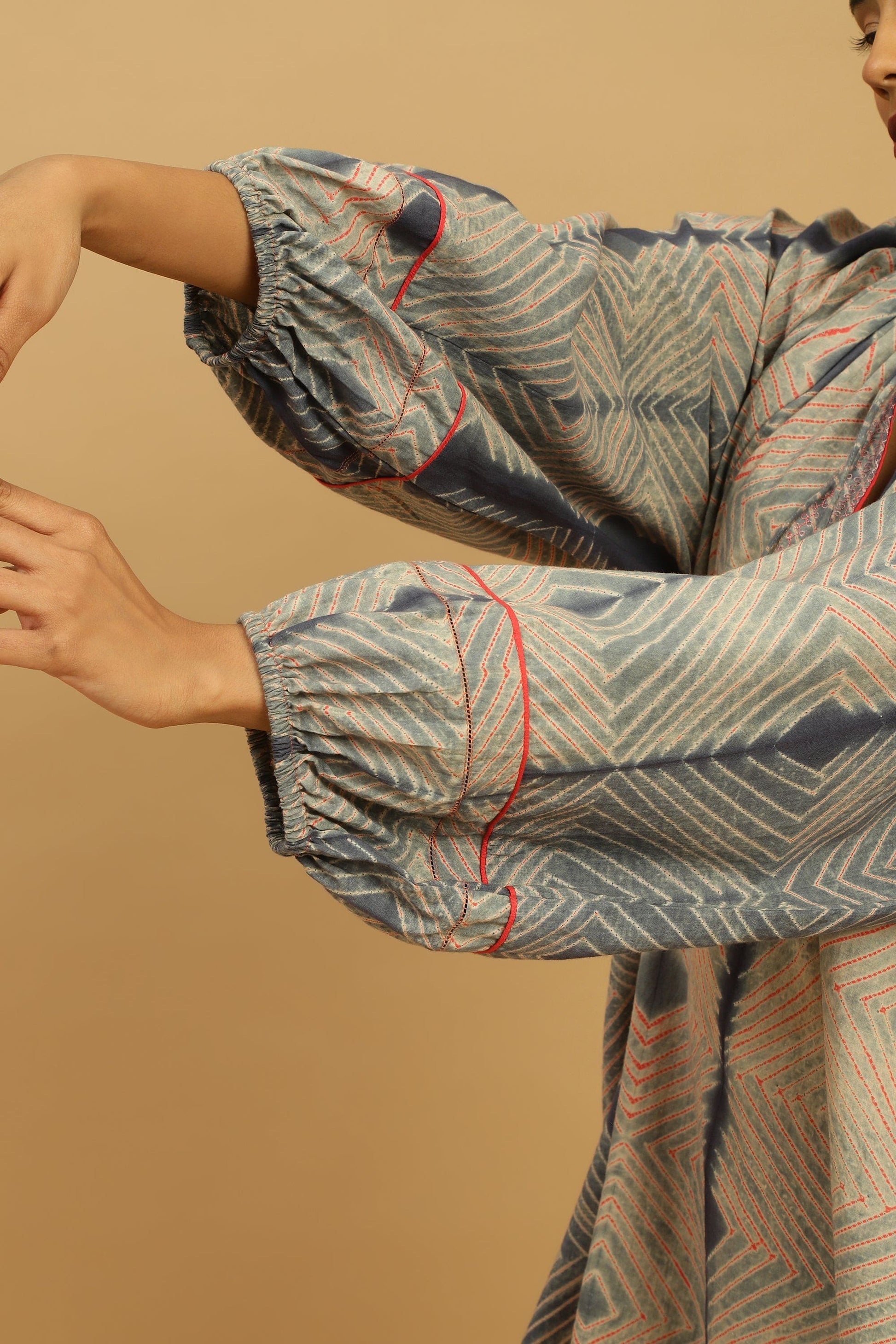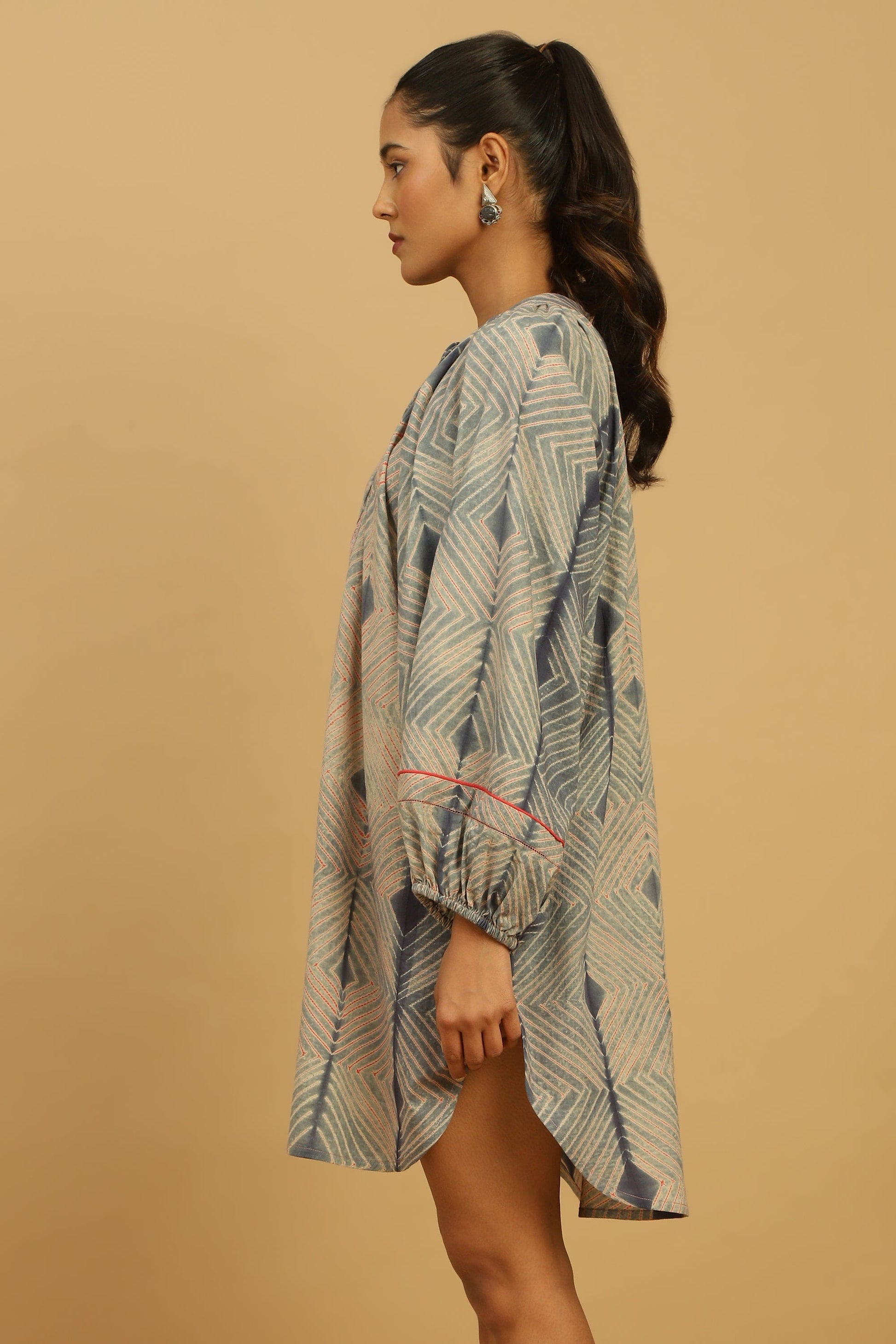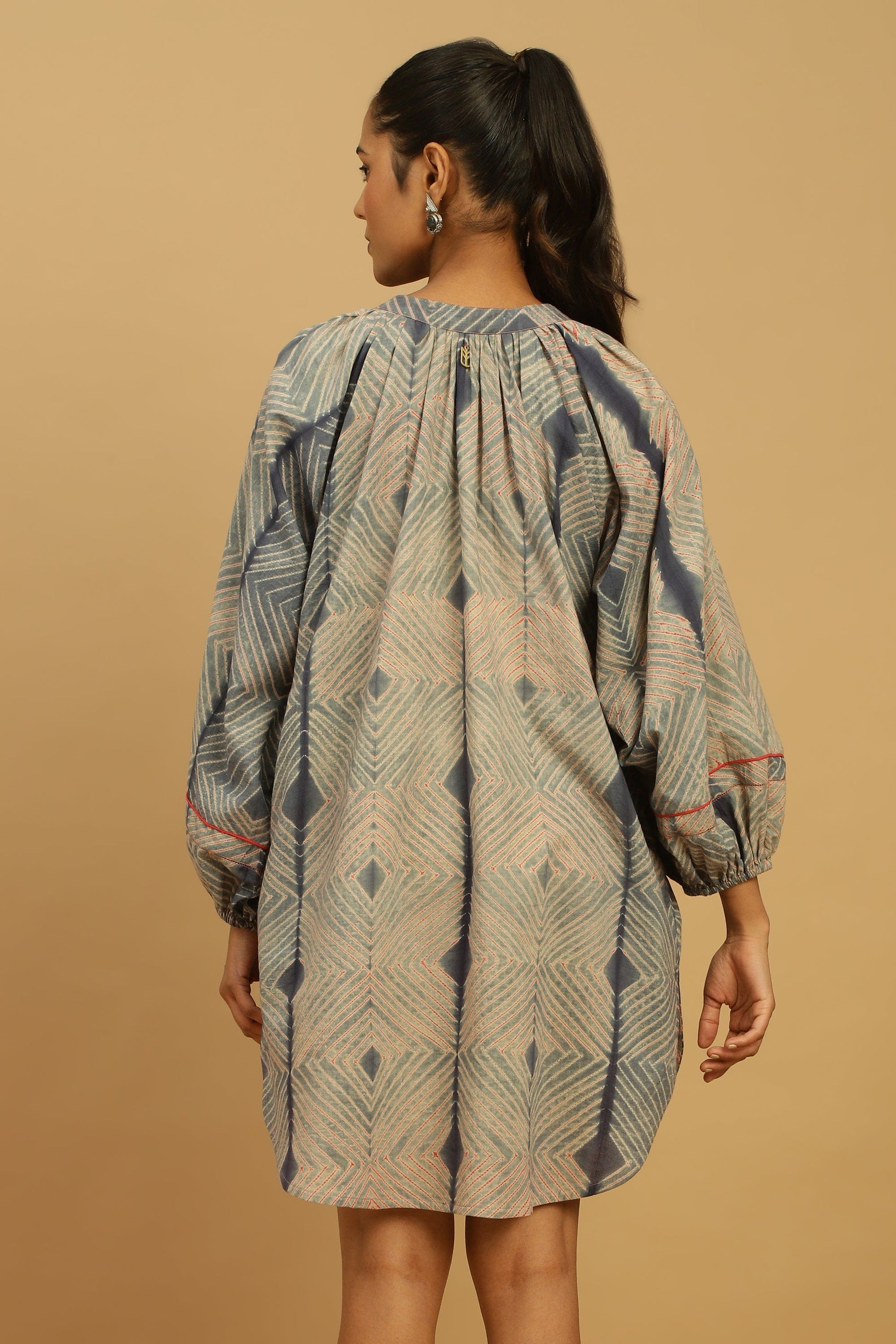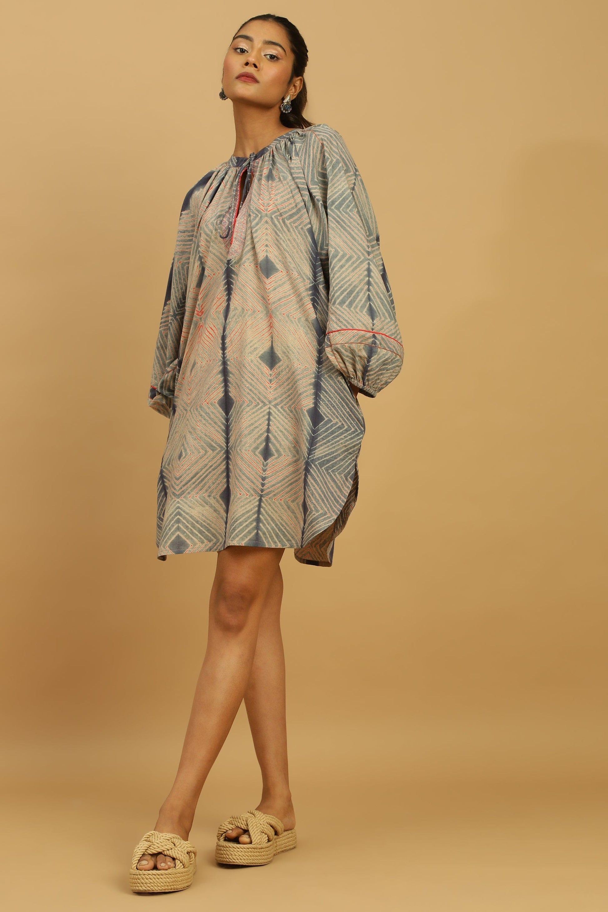 CORAL GREY INDIGO SHIBORI ORGANIC COTTON DRESS