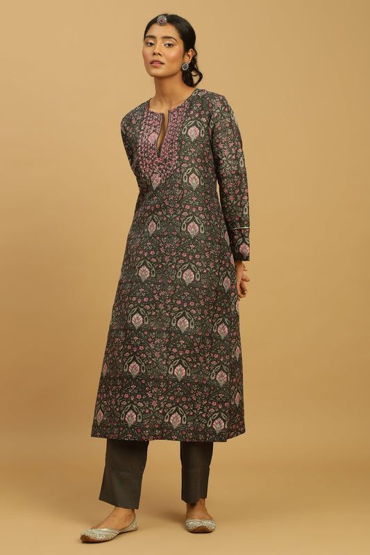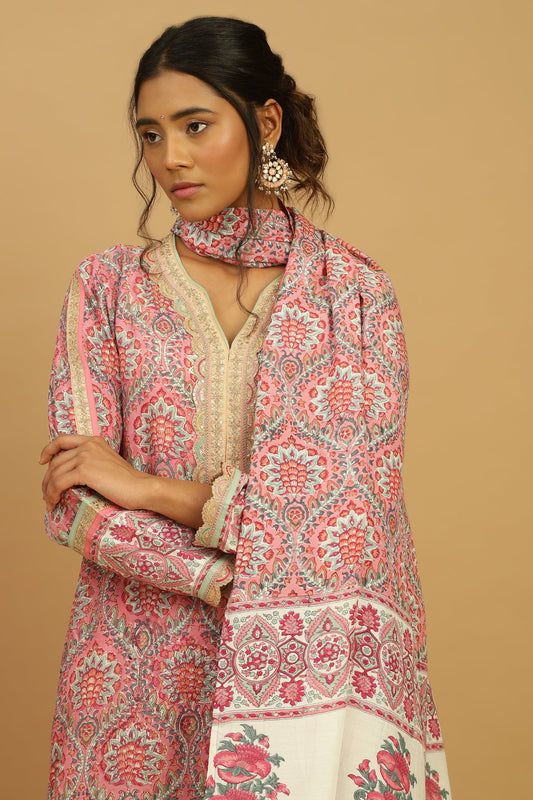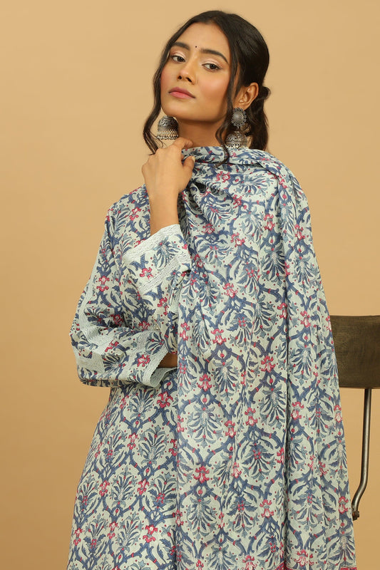 PHOOL JAAL COTTON SILK BLOCK KURTA SET (3 pcs)
