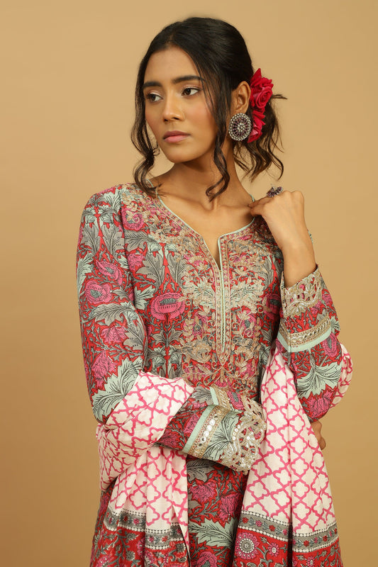 RED POPPY COTTON SILK KURTA SET (3 pcs)