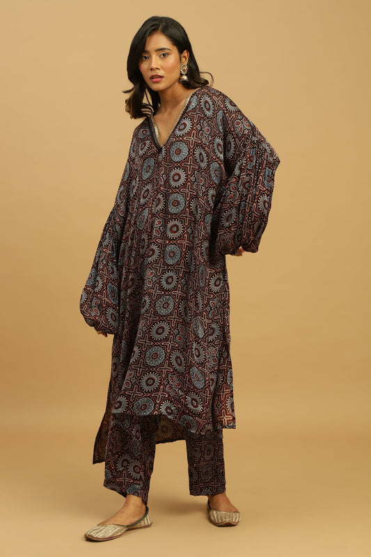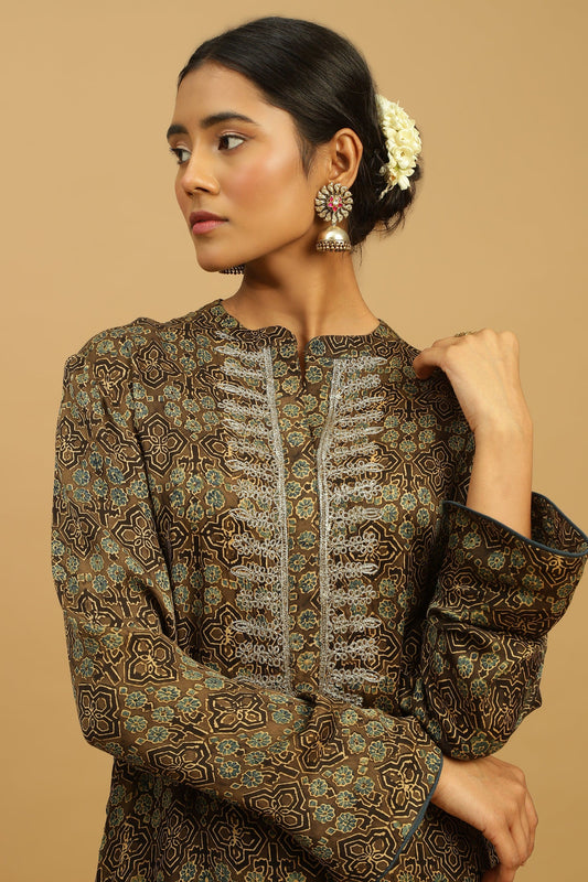 CHOCOLATE BOOTIE VELVET AJRAKH TUNIC SET