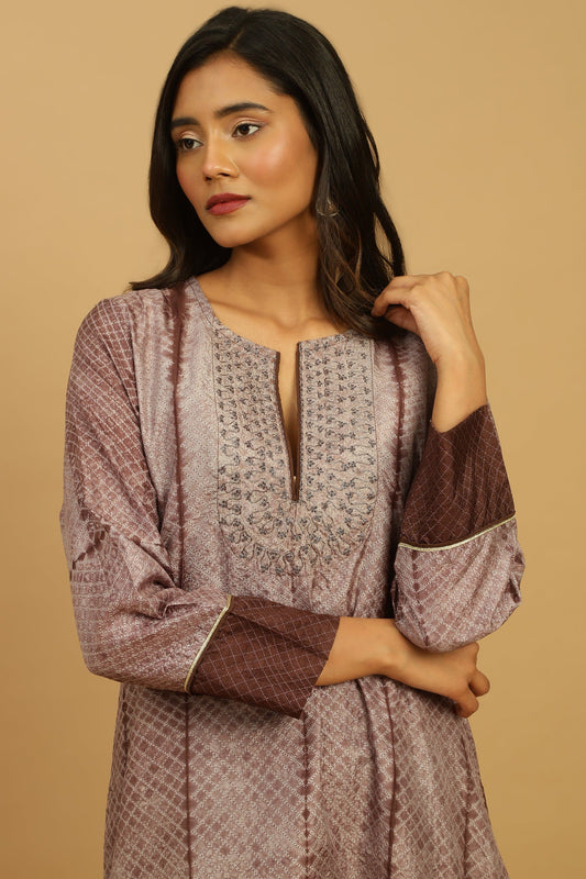 TAUPE JAAL COTTON SILK AJRAKH TUNIC SET