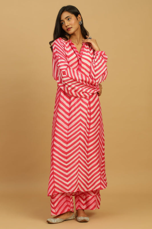 FUCHSIA COTTON SILK SHIBORI TUNIC SET